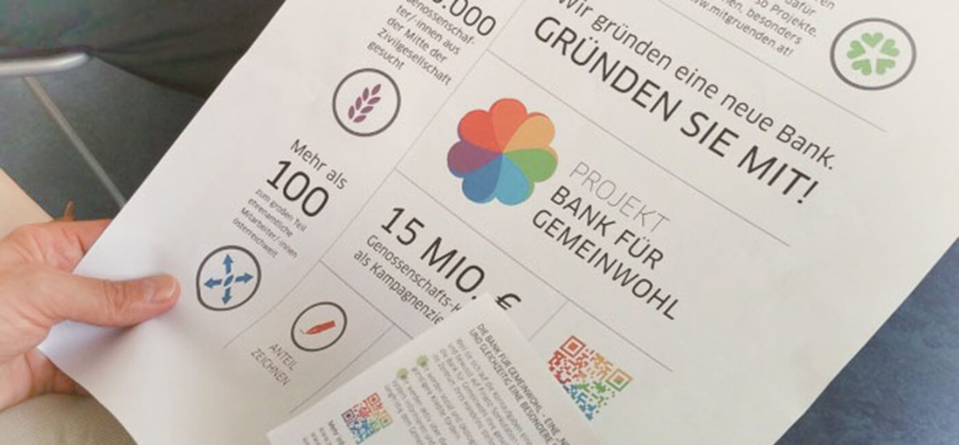 „Die meisten wollen sofort ihr Girokonto bei uns eröffnen“, erzählt Vorständin Christine Tschütscher. Damit das möglich wird, braucht die Bank aber noch Startkapital. Tschütscher appelliert daher: „Nach 5 Jahren Vorlaufzeit ist jetzt der Moment gekommen, zu zeichnen und bei uns Genossenschafter/-in zu werden! Denn die Zeit ist überreif für eine ethische Bank in Österreich.“