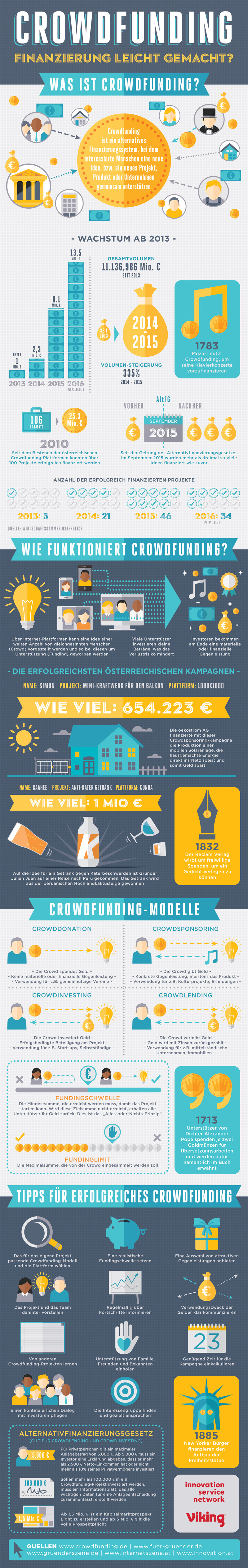 Die folgende Infografik gibt dir einen guten Überblick und fasst alle Aspekte zum Thema Crowdfunding nochmals an: